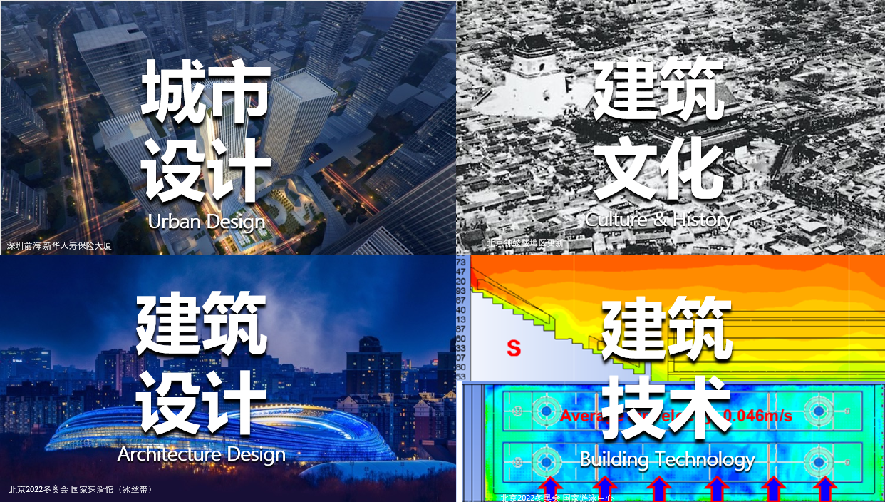 建筑设计I-IV、建筑类专业导论、建筑设计原理、中国建筑史、建筑构造技术、外国建筑史、建筑物理环境、绿色建筑与系统工程、城市设计、住宅设计、大型公共建筑设计、专题设计、建筑细部、交通空间行为仿真、数字化技术与建筑、大数据城市设计方法、建筑环境及性能模拟技术、风景区与城市绿地系统规划、建筑遗产保护等。