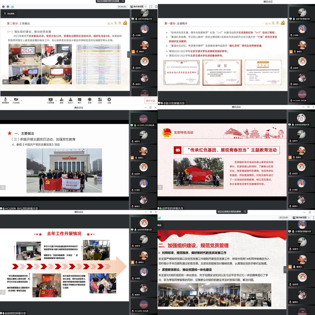 会议的最后,学院党委书记秦思阳对各支部的述职情况逐一点评,提出各支部工作的亮点、不足和建议,并在总结讲话中指出,2021年是建党百年,基层党建任务繁重,各支部按照学院党委工作部署,规范性开展党支部各方面工作建设,依托“我为群众办实事”发挥支部的战斗堡垒作用,圆满完成先进校检查、疫情防控期间人员管理、校内巡察等重大任务,同时各支部围绕党史学习教育,立足支部特色开展系列活动,有力推动党建工作创新。她代表学院党委感谢全体党支部书记的付出,希望各位支部书记在实事求是梳理目前存在问题的基础上,精准务实的围绕查摆问题切实改进,巩固党建成效,真抓实干,脚踏实地推动党建整体工作再上新台阶。