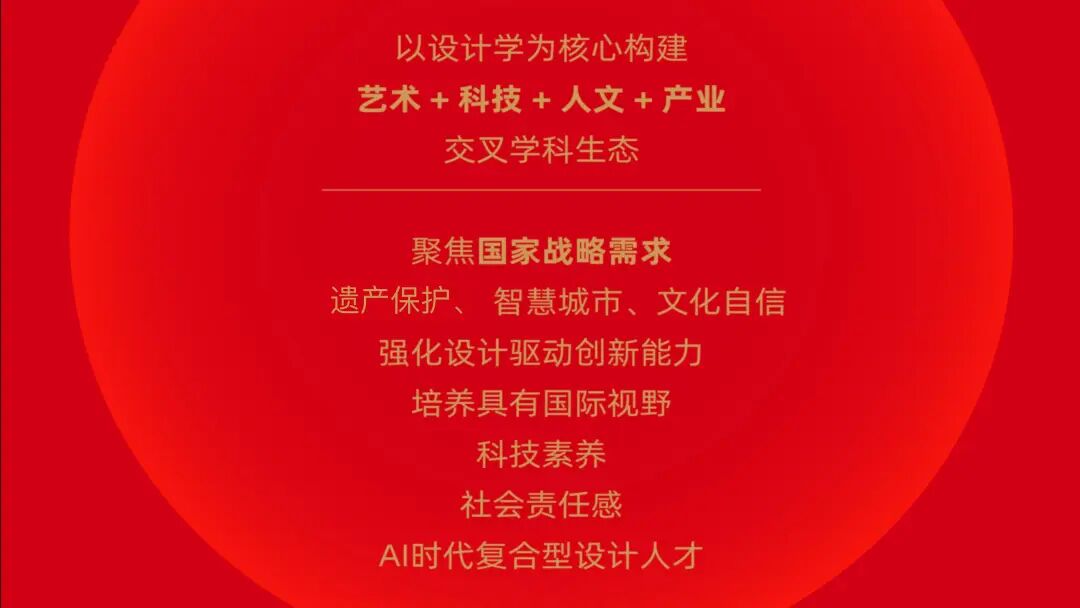 设计系将聚焦国家战略需求,围绕遗产保护、智慧城市、文化自信,强化设计驱动创新能力,培养具有国际视野,科技素养、社会责任感的AI时代复合型设计人才。
