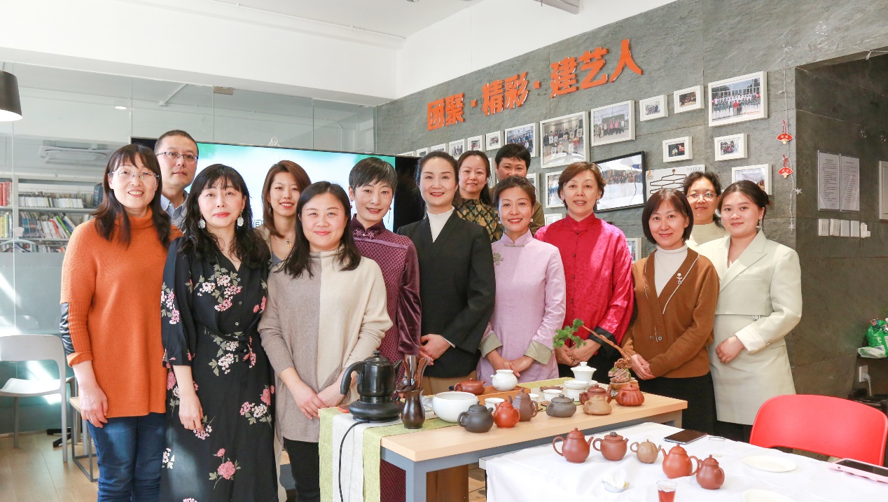 经典茶坊坊主,国家高级茶艺师陈雪,以娴熟的技艺展示了“白茶”、“茉莉花茶”、“熟普洱茶”泡茶品茶的详细步骤,并以“高潘紫砂壶”为例重点介绍了茶道器具与大家名作。在场的教师皆深入感受了品茶之礼。