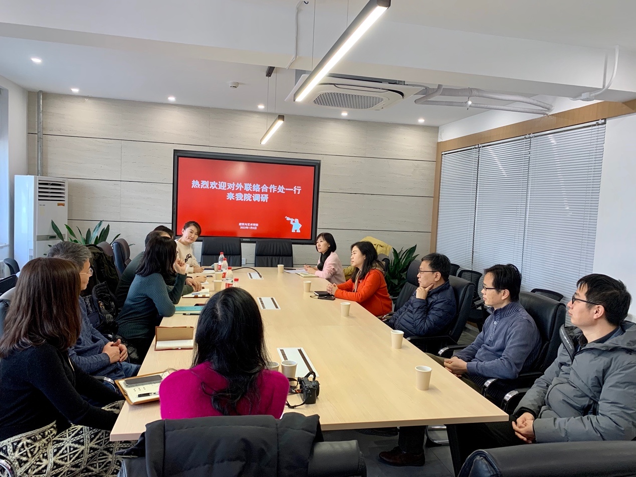 1月5日上午,学校对外联络合作处处长郭雪萌一行到建艺学院交流调研。会议在学院M3会议室举办,学院党委书记秦思阳、院长韩冰等院班子成员出席座谈会,双方就校园文创产品开发、校友情怀培育、社会服务探索、筹资拓展等问题进行深入交流探讨。