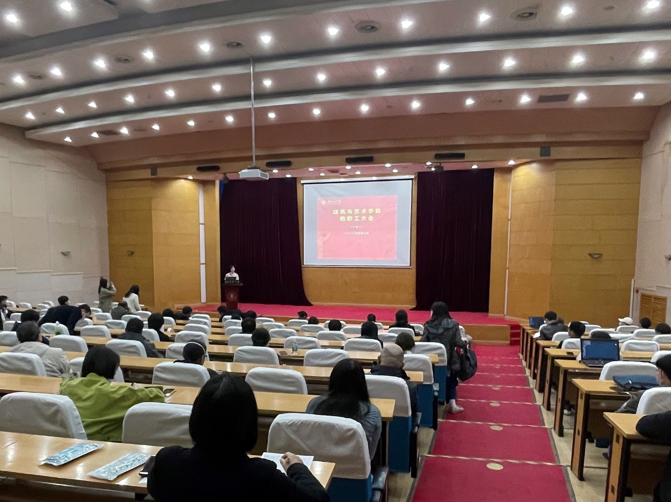 4月7日下午,建艺学院在科学会堂举行了全院教职工大会。会议开展了师德师风和意识形态专题培训,部署了学院2022年工作计划,研讨了学院学科创新方向。建艺学院全院教职工参加了大会。会议由学院党委副书记刘萍主持。