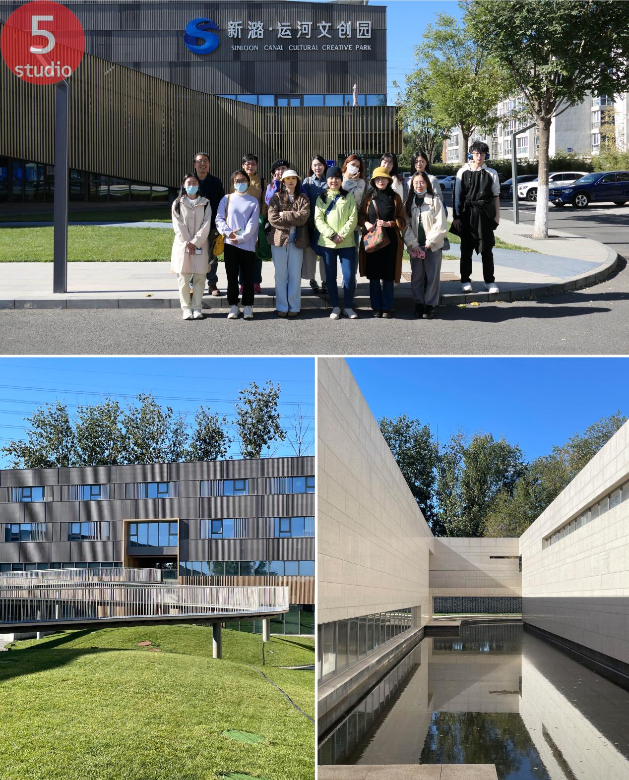 首先到达的是新潞·运河文创园。这是一个以文化+科技类为主体,景观整体设计以大运河为灵感,通过贯穿园区的“景观廊桥”等建筑语言和运河产生联系,加强了园区同城市大运河文化的共鸣。同学们在此参观游览,感受园区之美。整个园区的建筑与景观结合,游走路线与空间景观配合,同时将光线巧妙的运用,给置身其中的人带来不一样的视觉感受,其设计手法和理念都让同学们有了新的收获。