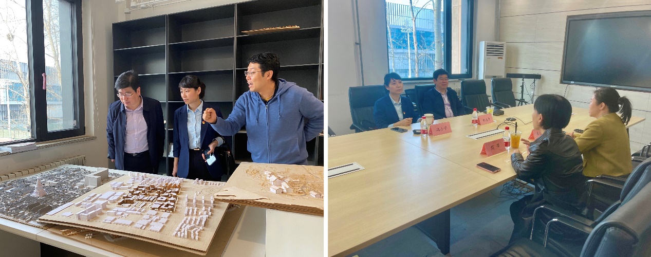 同时,为了加强校企深度合作,中铁设计咨询集团建筑院党委书记郭志勇,副院长冯小学一行参观了学院的教学环境,并与建艺学院党委书记秦思阳,党委副书记、副院长刘萍,就加强党建引领与业务融合,人才培养、科研合作等进行交流,并就接下来具体合作事项达成共识。