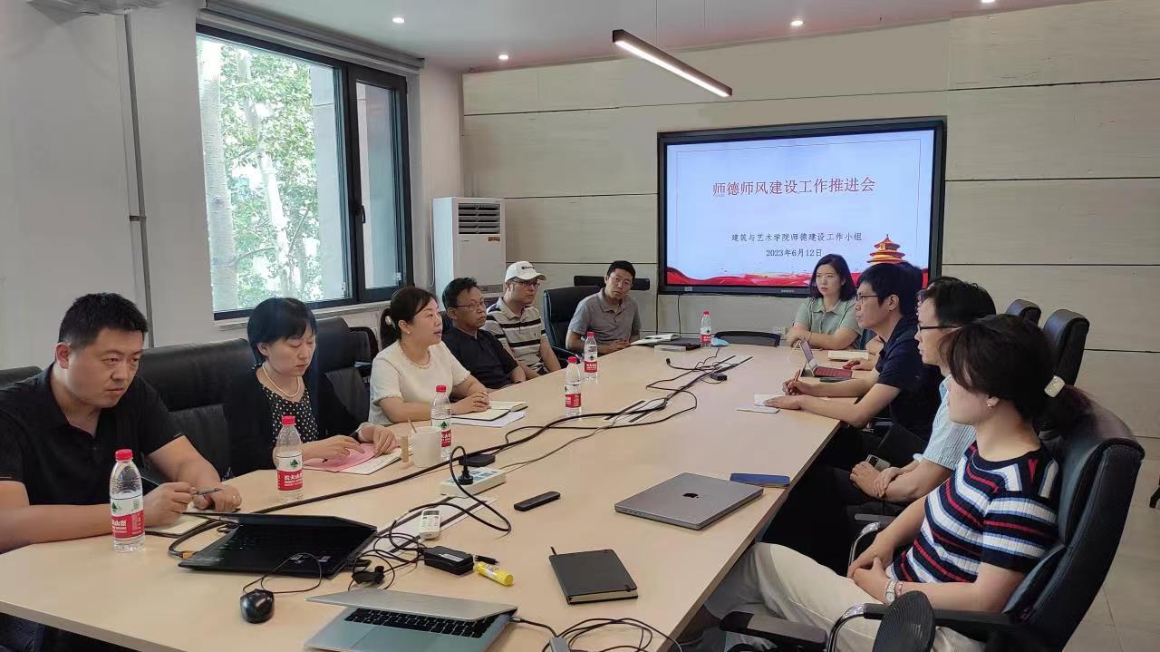 2023年6月12日上午,建艺学院召开师德师风建设工作推进会,学院全体班子成员、各系系主任、教职工党支部书记参加会议。学院党委书记秦思阳主持会议。