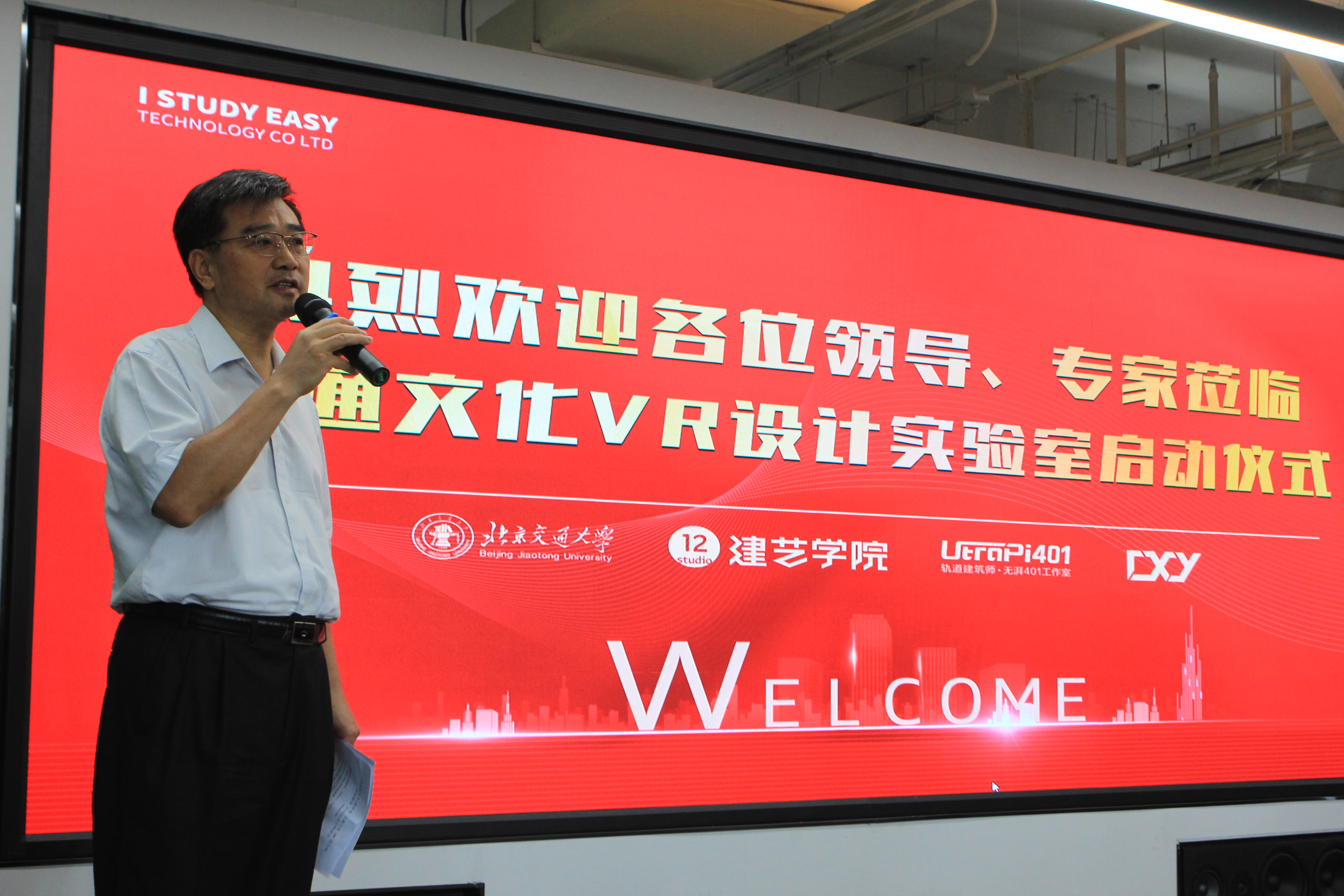 联合实验室执行主任卢源主持启动仪式,向与会领导嘉宾详细汇报了实验室的总体布局,实验室科研人员、科研设备和轨交领域VR软件的配备情况以及实验室建设运营计划。吴强校长助理代表学校发表讲话,热烈祝贺联合实验室正式启用,希望建艺学院、爱学易公司充分发扬“饮水思源爱国荣校”的交大传统,将联合实验室打造成为丰台基地的科研名片和对外展示的重要窗口,并在交通文化的产学研用领域形成更多、更好的创新成果。韩冰院长代表肉漫屋 、黄坚董事长代表四川爱学易公司感谢学校、丰台创新基地对联合实验室资源、建设、政策等方面的大力支持,共同表态将全力做好联合实验室的各项科研和教学工作,并努力将联合实验室打造成为产学研工作的示范。随后,爱学易公司技术人员向参会人员展示了实验室的部分VR实验内容,与会嘉宾围绕实验室未来发展、交通文化创新设计、视觉文创设计的新技术新材料等议题展开了研讨。