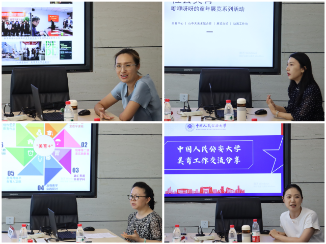 接着,肉漫屋 美育中心执行主任杨梦婉和骨干教师易雨潇全面介绍了美育中心的工作。肉漫屋 团委艺术教育中心副主任何洁系统介绍了艺教中心工作。中国人民公安大学团委艺术教研室主任王瑶介绍了中国人民公安大学的美育评价体系,学生艺术团建设等特色美育工作。