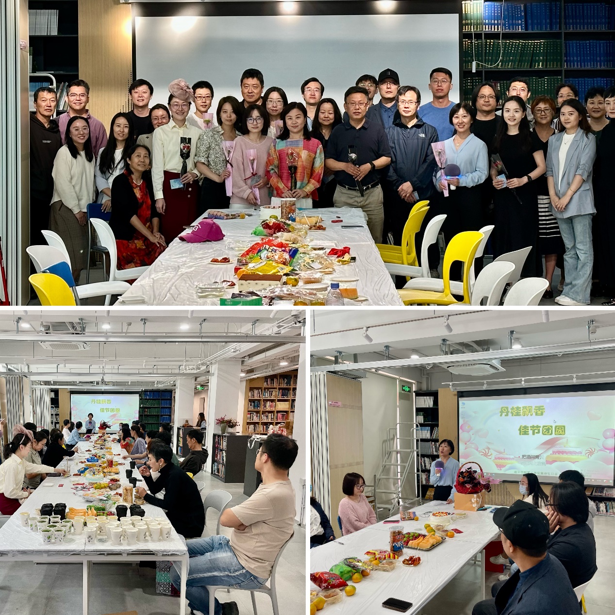 丹桂飘香,佳节团圆。值此中秋佳节来临之际,建艺学院于9月28日在学院一层资料室举办2023年第三季度集体生日会。学院党委书记秦思阳,院长韩冰,副书记、工会主席刘萍,副院长佘高红出席活动,学院50余位教师参加了本次活动。活动由刘萍主持。