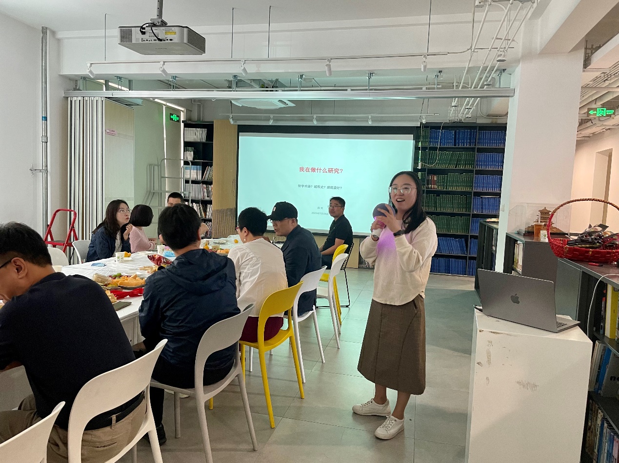 生日会后,学院青年教师联谊会组织“青芯”第5期青年教师学术沙龙,建筑系薛芃老师分享了最新发表的学术文章,通过一段关于北京芥子园的另类建筑史,对自己的研究领域进行了系统介绍。分享内容新颖丰富、拓展性强,为大家奉上了一道学术大餐,引起在座老师们的兴趣与赞赏,展示了青年教师扎实研究,勤于思辨的进取精神。