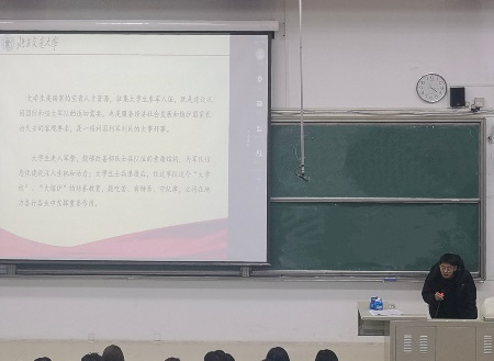 动员会上,华建嘉老师以加强国防教育为主题,督促同学们加强系统全面学习、锻炼自身体魄,鼓励同学们心怀为民精神,积极响应国家号召参军入伍,为国防事业做出贡献。从大学生征兵工作面临的新形势、在校生参军入伍基本情况、上半年征兵要求及流程、优抚安置政策等方面对2024年上半年征兵政策进行解读,并通过先进模范示例激发同学们的报国热情。