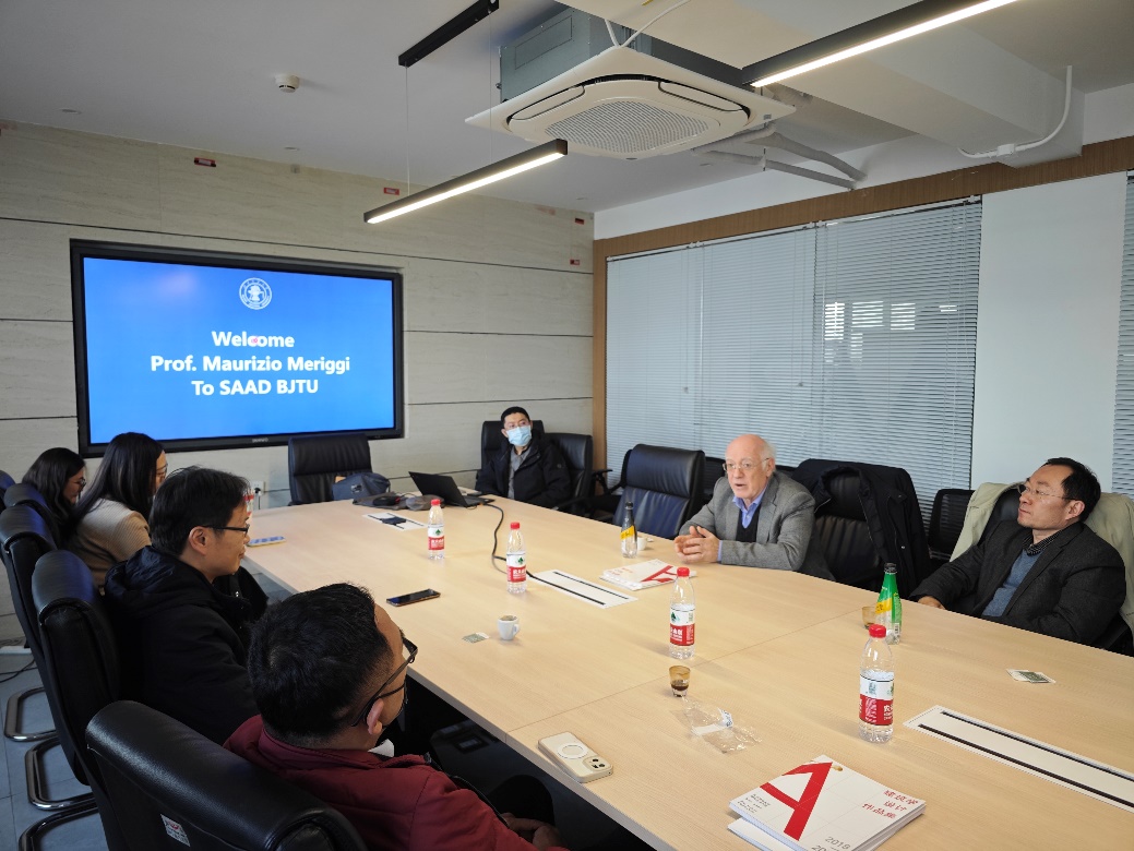 副院长佘高红代表学院向MAURIZIO MERIGGI教授此次访问交流表示欢迎,希望可以与米兰理工大学建筑、城市规划和建造学院建立长期的教学、科研交流合作。系主任王鑫介绍了肉漫屋 的发展历程、专业方向以及教学科研情况等。MAURIZIO MERIGGI教授感谢学院和韩林飞教授的盛情邀请,他曾多次到访我校,对于学院近几年的发展以及教学空间更新改造成果表示肯定,也分享了米兰理工大学建筑、城市规划和建造学院的近些年相关办学情况及个人在绿色城市、建筑遗产相关方面的研究情况,期待未来两校合作交流活动能够得到更近一步的推进和发展。
