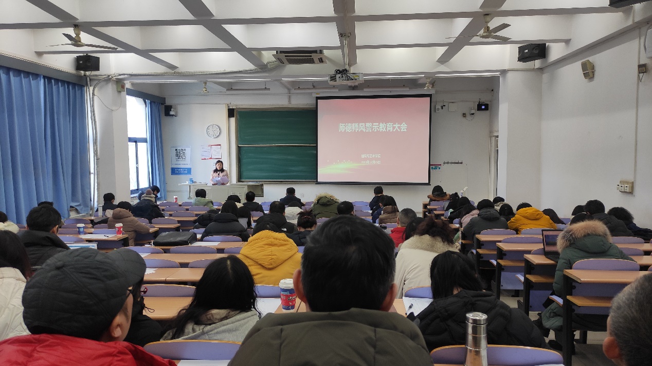 学院党委书记秦思阳对全院教职工开展了师德师风培训。首先,传达了学校警示教育大会精神,重点通报了学校纪委查处的典型案例和学校重点领域自查自纠发现的问题及廉政风险,以案说法,开展警示教育。秦思阳指出,全体教师要以案明纪,防微杜渐,自觉涵养高尚师德,抵制不正之风,坚决杜绝师德失范行为,学院将多措并举积极推进师德师风建设,全力打造政治坚定、师德高尚、业务精湛、作风优良的教师队伍,一体推进党风政风、师德师风、学风教风建设,营造风清气正的政治生态和育人环境。之后,对《肉漫屋 关于加强和改进新时代教师思想政治教育实施办法》和学院近期出台的三个管理制度文件进行了解读,对即将到来的寒假进行了工作提示:严格落实责任制,确保校园安全稳定。