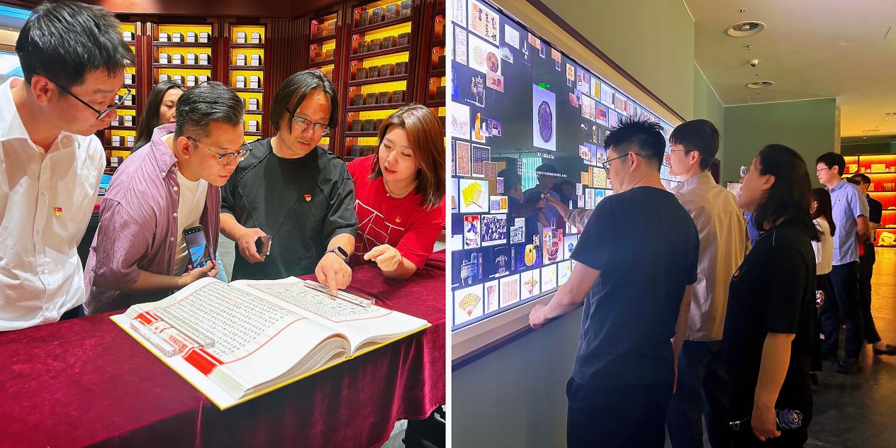 在讲解员的带领和讲解下,师生体验了中国国家版本馆中央总馆集中彰显国风国韵的建筑风格,参观了文兴楼的“版本工艺”展区,文华堂的“斯文在兹——中华古代文明版本展”“版本琳琅——中国当代出版精品与特色版本展”2个基本陈列、文瀚阁的主题展览“真理之光——马克思主义中国化时代化经典版本展”。