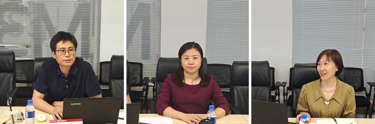 秦思阳代表学院对王艺一行的到来表示热烈的欢迎,她首先介绍了学院的发展历程、基本情况和党建品牌创建的做法和成效。她强调,学院秉持“党建领院、特色建院、人才强院、文化兴院、依法治院”的办学治院理念,通过打造特色的党建品牌,不仅提升党组织的凝聚力和战斗力,同时促进了学院各项事业的蓬勃发展。刘萍分享了学院在学生思想政治工作方面的创新举措,以实例和数据为支撑,展示了学院通过“5+1”实践育人体系和特色文化活动,有效提升了学生思想政治工作的针对性和实效性,为学生全面发展提供了支持与活力。张野分享了本科教学改革工作的最新进展,并详细介绍了学院在教育教学改革方面的探索与实践,以及取得的积极成效。