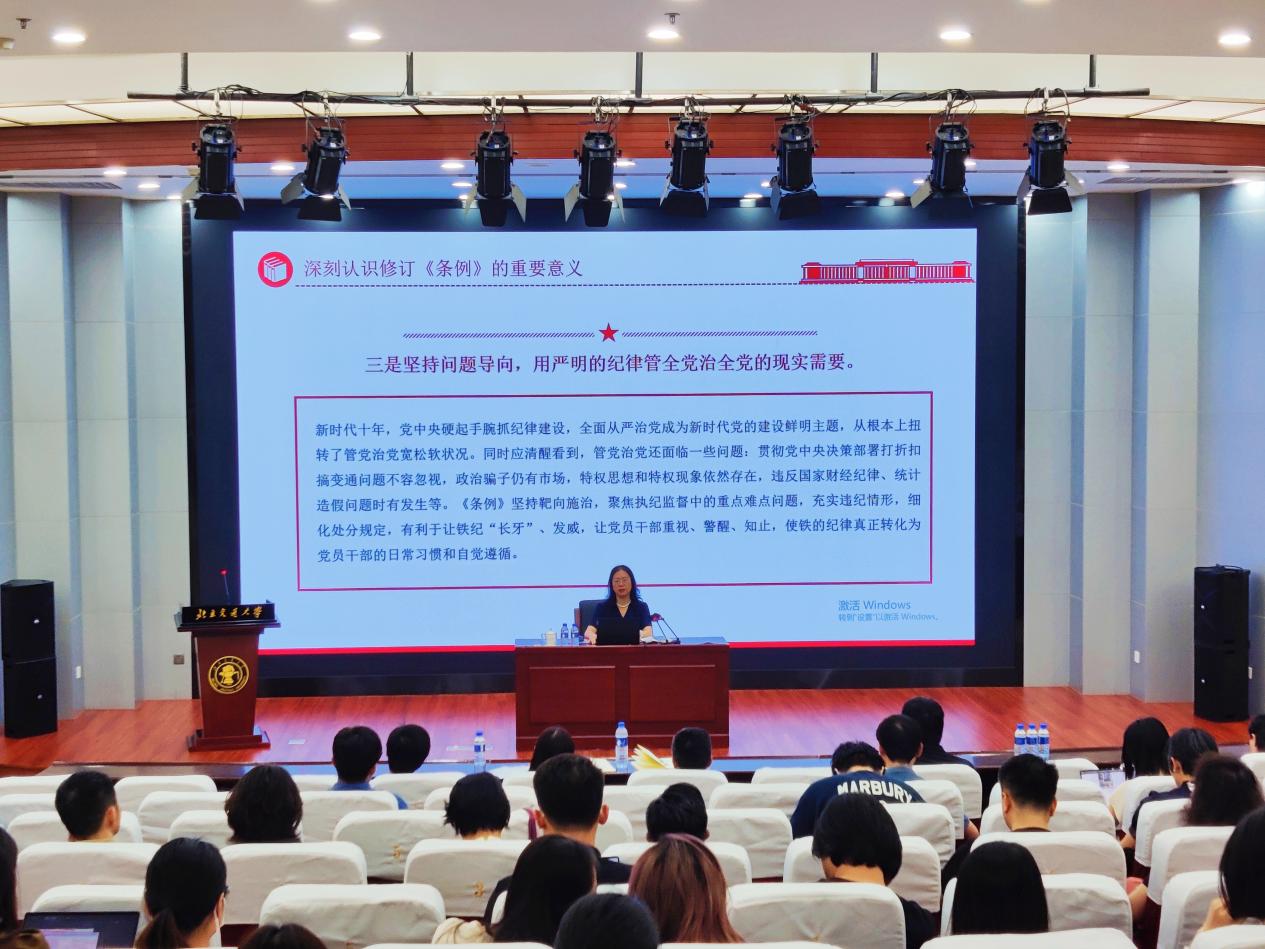 于亚光以“知敬畏、存戒惧、守底线——学习《中国共产党纪律处分条例》”为题,从“深刻认识修订《条例》的重要意义”“《条例》新增修改的主要内容”“六项纪律‘负面清单’”“违反纪律典型案例”四个方面进行了详细讲解,主题鲜明,深入浅出,结合自身工作经验,将《条例》联系到高校工作实际,用身边事教育身边人,以案促学,以案促思,加深了全体党员对《条例》的理解、对党纪的认知。通过学习,学院党员进一步强化了法纪意识、底线意识,增强了政治定力、纪律定力、道德定力、抵腐定力,决心把遵规守纪刻印在心,内化为言行准则,切实把党纪学习教育的实际成效转化为推动学院事业发展的生动实践。