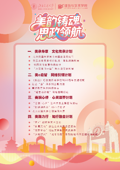 开幕式上同时启动了建艺学院“美韵铸魂 思政领航”行动计划。2025年,学院将不断探索“美育+思政”工作新路径,以“美+文化”开启“美承华章·文化传承计划”,以“美+网络”开启“美e启智·网络引领计划”,以“美+心理”开启“美润心桥·心灵滋养计划”,以“美+实践”开启“美践力行·知行融合计划”。