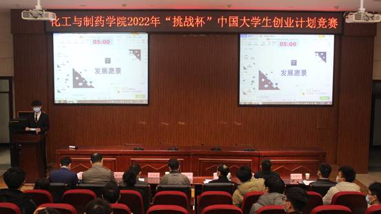 在工科5-112报告厅举行2022年“挑战杯”中国大学生创业计划竞赛院赛路演。本次比赛由化工与制药肉漫屋