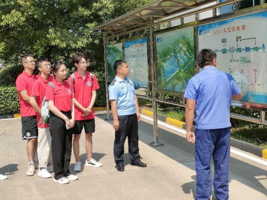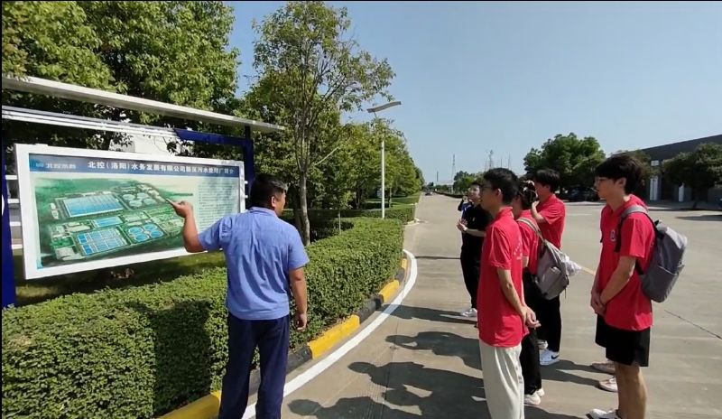 出征仪式结束后,实践团队与洛阳市生态环境综合行政执法支队洛龙大队共同进入到北控(洛阳)水务发展有限公司新区污水处理厂开展本次实践活动。进入厂区后,厂区负责人首先进行了入厂安全教育,讲解安全知识和注意事项,强化安全意识,确保整个参观实习过程安全有序。之后他详细介绍了新区污水处理厂的日处理规模、生产经营情况和处理后的中水使用情况。