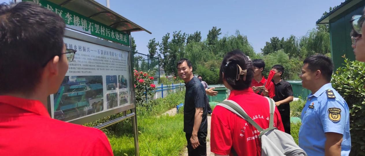培训结束后,刘队长与杨厂长带领实践团队到李楼镇石罢村参观小型污水处理站。李楼街道26个社区全部是农村社区,近两年来,街道以农村社区“污水改造”“安全饮水”为整改重点,全面推进乡村振兴成果真正惠及百姓,石罢社区作为街道“水治理”工作典型代表区域,其供排水一体化生活污水处理系统的污水日处理量达850吨,保障附近3个村庄1260户居民及企业生产生活日常污水排放处理,同步实施了全域管网改造和户厕改造。利用中水新建成乡村驿站、文化广场、体育公园、社区卫生服务中心等公共服务亲水综合体,服务惠民水平进一步提升,让治理改革的成果真正服务于辖区百姓。