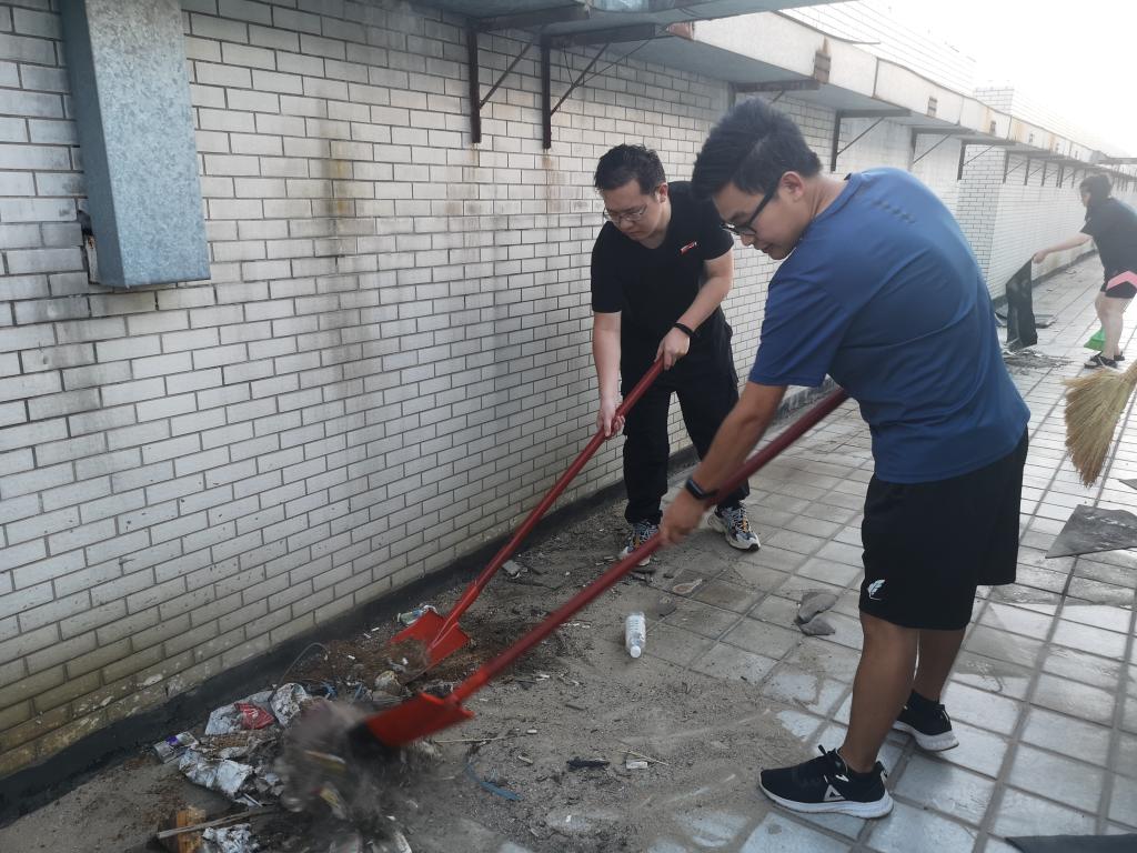 在于书记的带领下,同学们不惧炎热、不怕脏、不怕累,干劲十足,把堵在一个个排水口上的垃圾逐一清除,对影响排水的杂物一一清运干净。