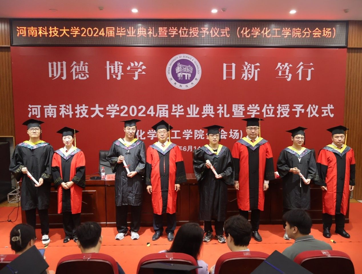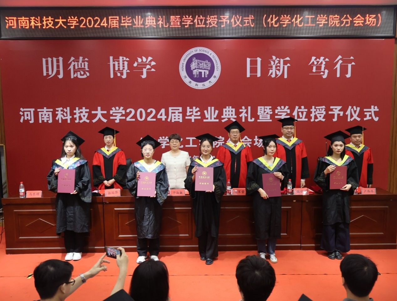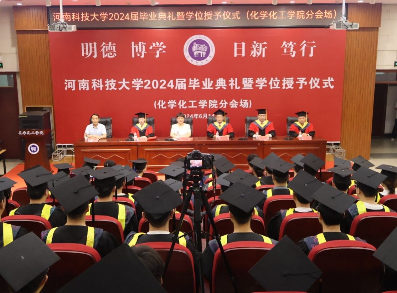 党委书记于淑敏、院长马军营、理学部执行主任、副院长魏学锋、副院长张延萍、副院长卢伟伟、化工系副主任李欣、环境工程系主任王辉、制药工程系主任王新胜、院团委副书记张俊、辅导员许淑贤、赵国锋和24届毕业生参加典礼。典礼由院党委副书记马东辉主持。