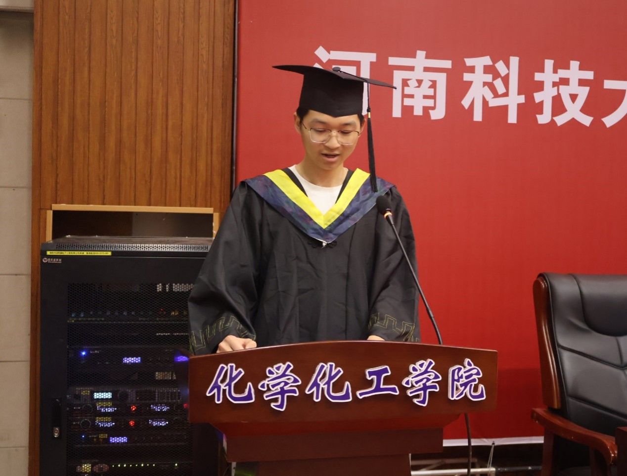 教师代表化工系副主任李欣和制药工程系主任王新胜发言,对同学们圆满完成学业、即将启航人生新征程表示祝贺,希望同学们不要忘记母校的辛勤培养和期望,一定要勤奋努力,不断追求进步,用实际行动去诠释我们的校训。