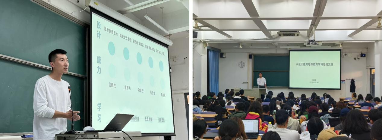 为了促进2024级新同学深化专业理解,加速融入大学生活,10月16日晚,建艺学院邀请2016级建筑学校友杨振盛为全体2024级新生带来 “以设计能力培养助力学习思维发展”的分享。