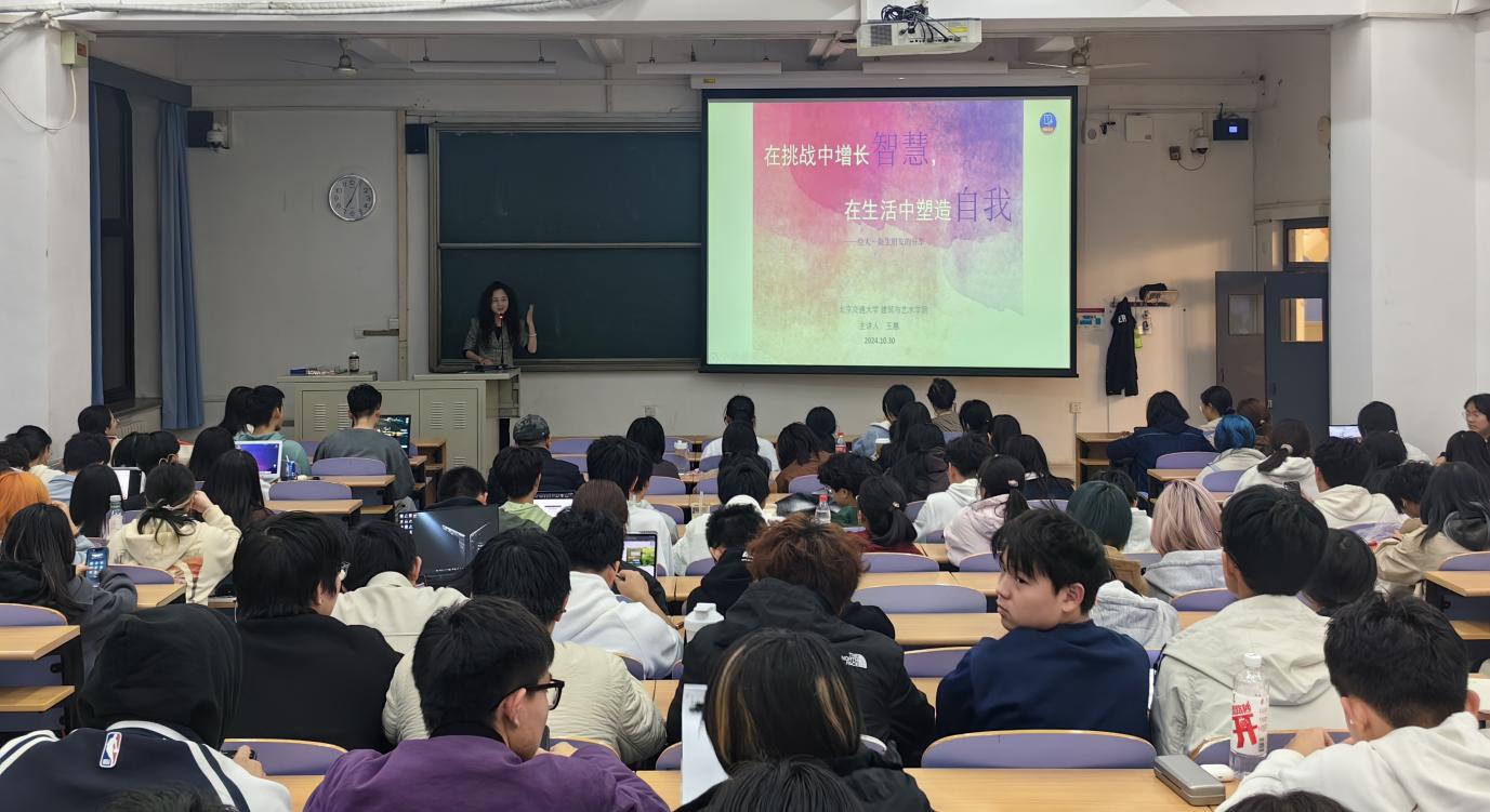 为了帮助2024级新同学塑造成长心态,强化自我激励能力,10月30日晚,建艺学院邀请2005级建筑学校友王惠为全体新生带来“在挑战中增长智慧,在生活中塑造自我”的分享。