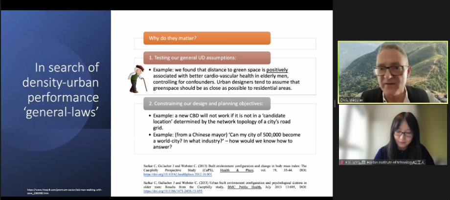 Prof. Webster Christopher John of The University of Hong Kong (HKU) gave a speech entitled “Urban density and human behavior”, which elaborated on the relationship between environment and behavior from three aspects: macro-control and market mechanism regulation of urban design, the intervention of scientific and technological methods and natural environment perception.