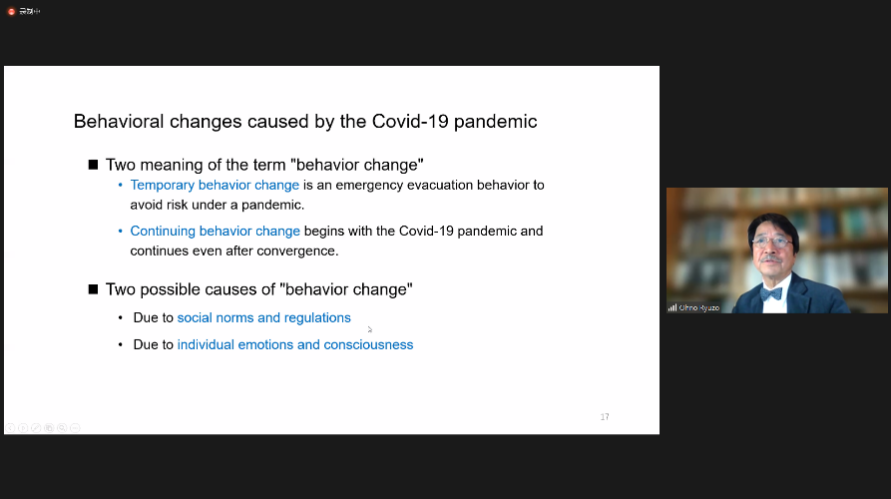 The speech of Prof. Takashizo Ohno from the Tokyo Institute of Technology, entitled "How can environmental-behavior studies contribute to enhancing social resilience to disasters, including pandemics", analyzed many ways to strengthen social resilience under the specific environment like disasters including pandemics from the perspective of environmental behavior.
