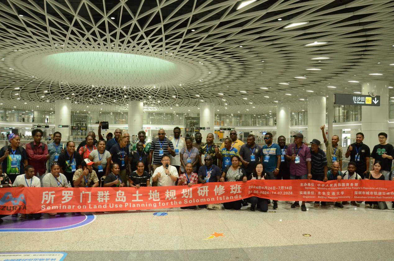 On the afternoon of July 14, 2024, the Seminar on Land Use Planning for the Solomon Islands, a short-term training program sponsored by the Ministry of Commerce of the People's Republic of China and organized by Beijing Jiaotong University, was successfully completed in Shenzhen Urban Railway Transportation Association. Mr. Zhao Penglin, former Deputy Secretary General of Shenzhen Municipal Government, Special Advisor to the Director of Xiongan New Area Management Committee of Hebei Province, and now the honorary President of Shenzhen Urban Railway Transportation Association, and Mr. She Gaohong, Vice Dean of the School of Architecture and Design, attended the closing ceremony and issued the certificates for the students.